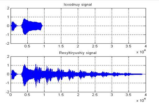 Рисунок В.4—Исходный и результирующий сигнал при многократной задержке с помощью рекурсивного фильтра на MatLab