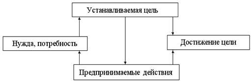 Как видно из рисунка, процесс мотивации начинается с какой-либо ощущаемой неудовлетворенной потребности, нужды. Затем определяется цель, которая предполагает, что для удовлетворения потребности требуется некое направление действий, посредством которых может быть достигнута цель и начаться удовлетворение потребности.