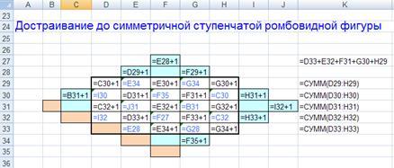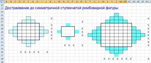 Достраивание до симметричной ступенчатой ромбовидной фигуры