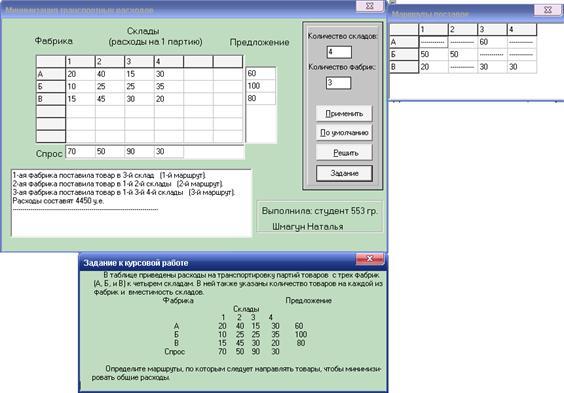 при заданной стоимости перевозки единицы транспортируемого продукта между каждой парой пунктов поставки и потребления.