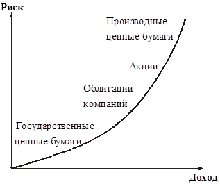 Важным классификационным признаком для ценных бумаг является уровень риска. По уровню риска виды ценных бумаг располагаются следующим образом (рис.1). То есть чем выше доходность, тем выше риск; чем выше гарантированность ценной бумаг, тем ниже риск и доходность.