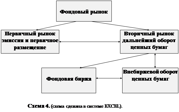Как на первичном, так и на вторичном рынках имеется много путей продажи и покупки ценных бумаг. Главным из них является торговля ценными бумагами на фондовой бирже (схема 4).