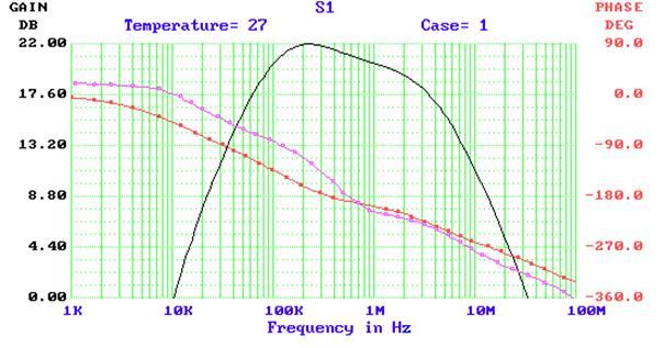 Реализуемые схемой - верхняя частота - Fв = 2.3Мгц и коэффициент усиления К = 22Дб = 12.6