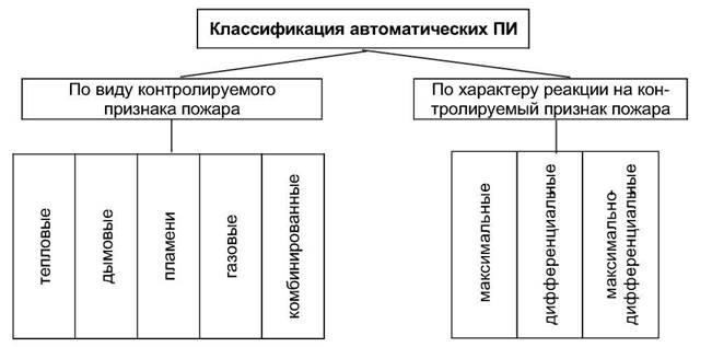 По виду контролируемого признака пожара автоматические ПИ подразделяют на типы: