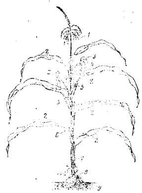 1. метелка; 2. лист; 3. рыльца; 4. початок