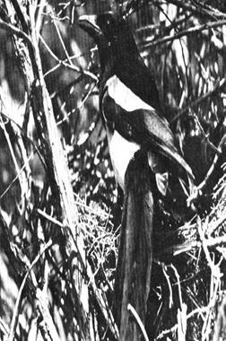 В тесном изнутри гнезде-шаре сороке нелегко упрятать свой длинный хвост.