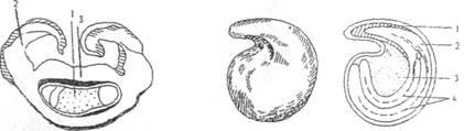 Рис. 1. Плод и семя сахарной свеклы: А - разрез через плод: 1 - семя: