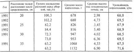 • от густоты стояния. Чем больше площадь питания отдельной свеклы, тем больше высота головки (табл. 1);