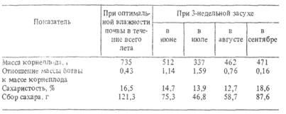 Относительная засухоустойчивость сахарной свеклы по сравнению с засухоустойчивостью других культур связана не только с ее анатомо-физиологическими свойствами. Она обусловливается и мощной, хорошо развитой корневой системой, что позволяет растениям использовать влагу из глубоких слоев почвы. Кроме того, свекла характеризуется длинным вегетационным периодом и может усваивать поздние летние осадки. В связи с этим в годы с недостаточным количеством осадков у свеклы наблюдается относительно меньшее снижение урожайности, чем у многих других культур.