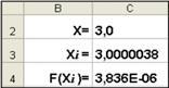 · В ячейку С4 поместим формулу, задающую вычисление значения функции, стоящей в левой части исходного уравнения, в точке Хi
