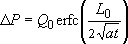 где a - коэффициент уровнепроводности, t - расчетный момент времени от начала работы водозабора, erfc - обозначение известной студентам специальной функции (дополнительный интеграл вероятности); Q0 - дебит водозабора с поправкой на инверсию бессточной разгрузки.