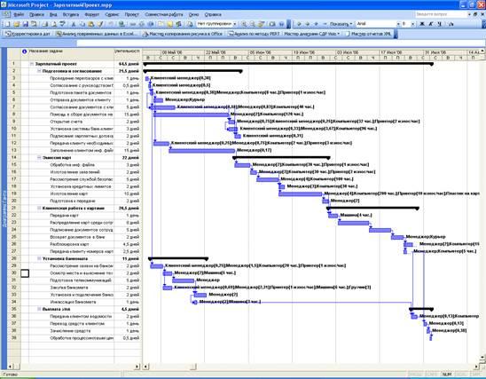 Наша страна не исключение. Многие компании используют системы управления проектами. В данной работе был рассмотрен пример построения проекта по предоставлению зарплатного проекта банком. Поставленные цели были достигнуты, задачи решены.
