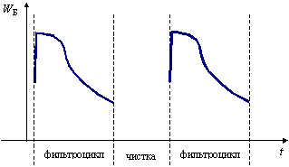 В связи с развитием процессов кольматации скорость инфильтрации из бассейна довольно быстро снижается (рис.6.9) и через некоторое время работа бассейна становится малоэффективной. Длительность так называемого фильтроцикла составляет в разных условиях 3 - 6 месяцев (иногда более), после чего производится чистка бассейна путем механического удаления закольматированных донных отложений с последующей подсыпкой фильтрующей гравийно-песчаной смеси. На период чистки в работу запускается резервный бассейн.