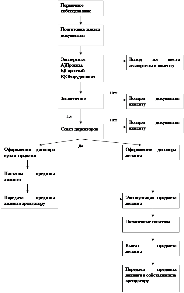 Схема оформления договора лизинга оборудования более простая, чем при получении кредита. Для получения оборудования в лизинг не требуется развернутого бизнес-плана: предприятию нужно лишь заполнить заявку и приложить к ней стандартный набор юридических документов. Решение о финансировании или отказе в таковом принимается в течение 10—14 дней с момента подачи заявки.