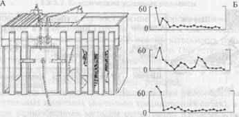 Торндайк первым предложил количественную оценку динамики обучения животного инструментальному навыку. Для этого он ввел так называемые «кривые научения», примеры которых приведены на рис. 4Б.