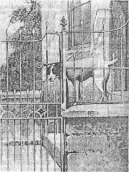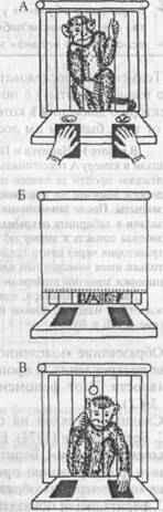 В опытах с «проблемными ящиками» Торндайк наблюдал, как посаженная в ящик кошка ищет выход, пытаясь открыть дверцу разными способами (рис. 3.4А) (для этого нужно было нажать на задвижку или потянуть за пружину). Кошка сначала совершает много разных действий (проб), которые в своем большинстве бывают неверными (ошибки), пока случайно не откроет яшик. При повторении опытов она выходит из ящика все быстрее и быстрее. Идея эксперимента была подсказана Торндайку К. Ллойдом-Морганом, наблюдавшим, как его собака манипулирует с задвижкой калитки, чтобы «улизнуть» из дома (рис. 3.5). Такое обучение Торндайк и назвал «методом проб и ошибок». В дальнейшем обучение животного подобным действиям получило название инструментальных (или оперантных) УР.