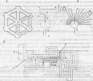 Существует целый ряд подходов к исследованию формирования у животного пространственных представлений. Некоторые, как мы только что показали на примере работ Мензела и Пажетнова, связаны с оценкой ориентации животных в естественных условиях. В лаборатории наиболее часто используются две методики — радиальный и водный лабиринты. Роль пространственных представлений и пространственной памяти в формировании поведения в основном исследуется на грызунах, а также некоторых видах птиц.