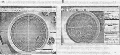 А — проекция на экран монитора круглого бассейна с водой, плавая в котором животное отыскивает невидимую платформу; Б — траектория движений животного, зарегистрированная специальным устройством.