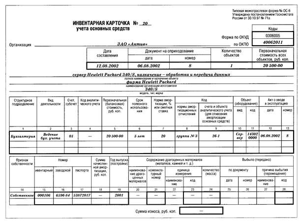 · независимо от организационно-правовой формы собственности предприятия, учет основных средств организуется в бухгалтерии в разрезе инвентарных объектов, каждому из которых присваивается инвентарный номер;