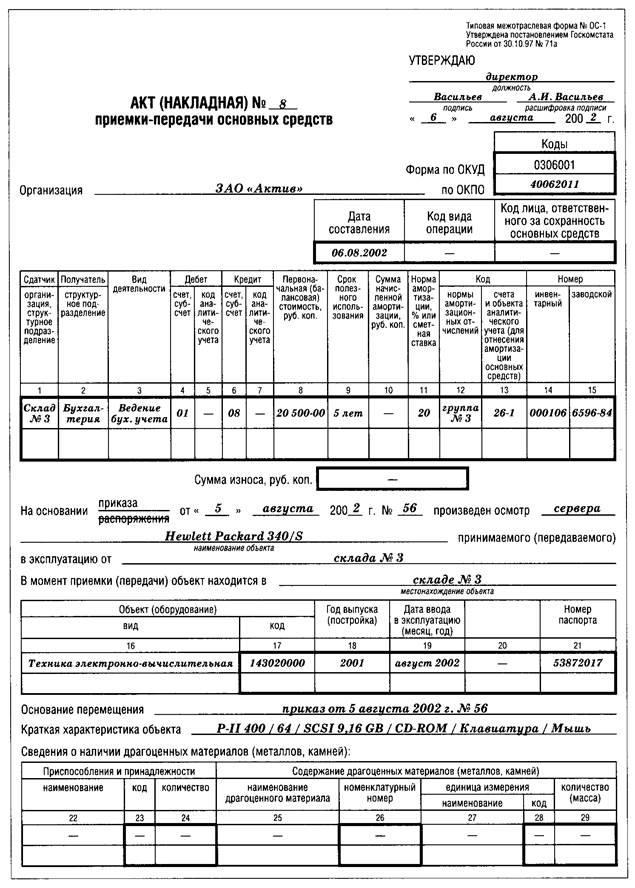 4.2. Акт(накладная) приемки-передачи основных средств