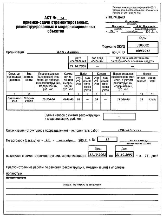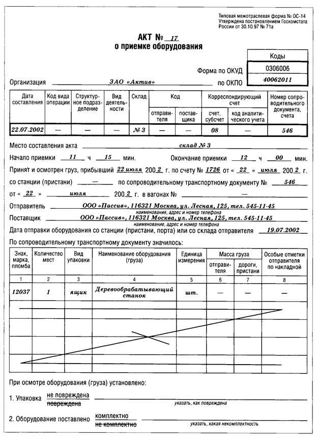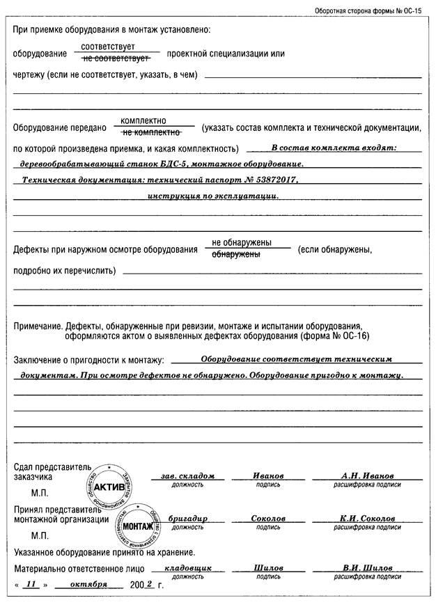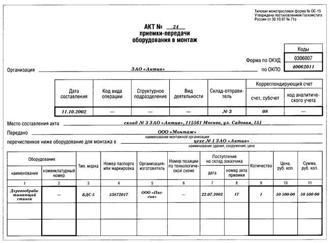 5.4. Акт приемки-передачи оборудования в монтаж (форма N ОС-15) 22