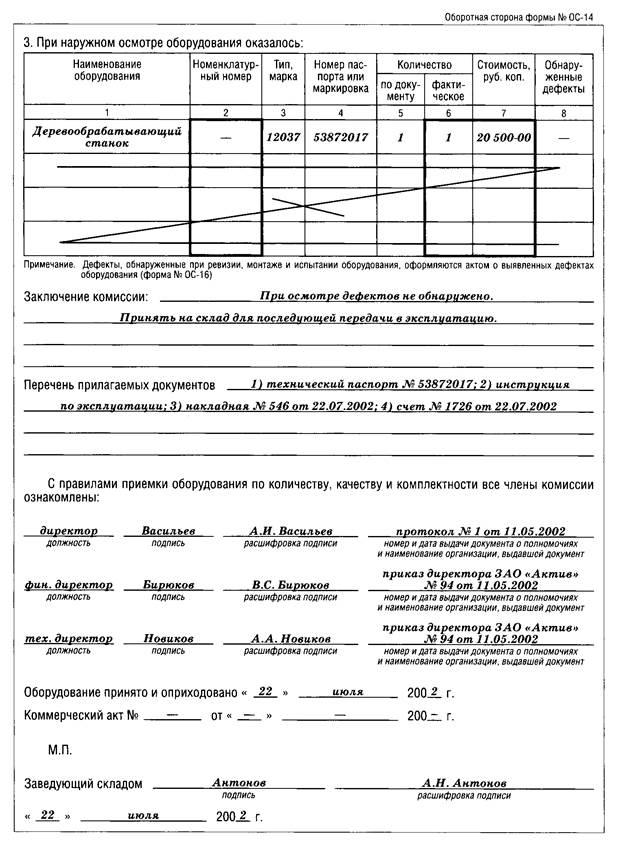 4.3. Акт о приемке оборудования (форма N ОС-14) ………………..… 14