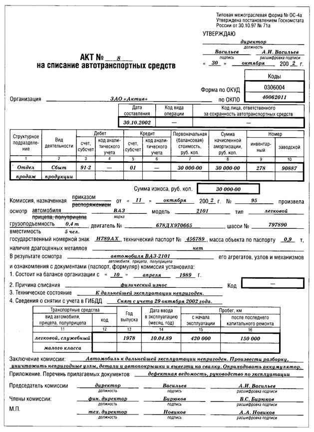 5.3. Акт на списание автотранспортных средств (форма N ОС-4а) 21