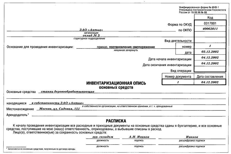 6.3. Инвентаризационная опись основных средств (форма N ИНВ-1) 24