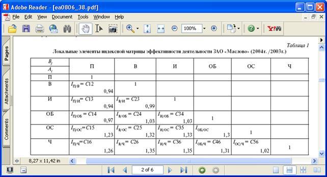 Комплексная оценка эффективности деятельности предприятия производится на основе обобщающего показателя уровня эффективности по формуле средних арифметических индексов (элементов матрицы):