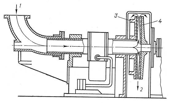 1 — вход массы; 2— выход массы; 3 — статор; 4 — вращающийся диск