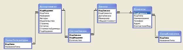 В ходе создания таблиц и связей между ними была получена следующая схема данных: