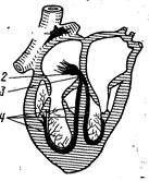 предсердно-желудочковый ствол (пучок Гиса); 4 —