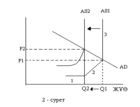 Айтылған себептерге байланысты өндіріс шығындары өседі, жалпы ұсыным қисығы солға қарай жылжиды (AS2