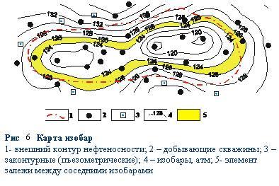 Карта изобар (рис. 6) служит основой для определения среднего динамического пластового давления на определенную дату по залежи (или отдельным ее частям).