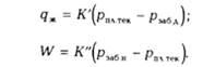 При установившейся фильтрации жидкости депрессия на забое добывающей скважины и репрессия на забое нагнетательной скважины находятся в прямой связи соответственно с дебитом по жидкости qж и приемистостью W: