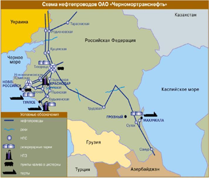 Рис 1. Схема нефтепроводов ОАО «Черномортранснефть».
