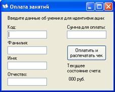 Окно для приема оплаты за занятия