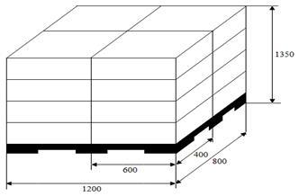 На основании полученных данных сформируем транспортный пакет из отдельных упаковок груза с использованием поддона. размеры поддона выбираем в соответствии с гост 9078-84 «поддоны плоские. общие технические условия». на рисунке 2 изображен выбранный поддон с размерами 1200х800х150 мм.