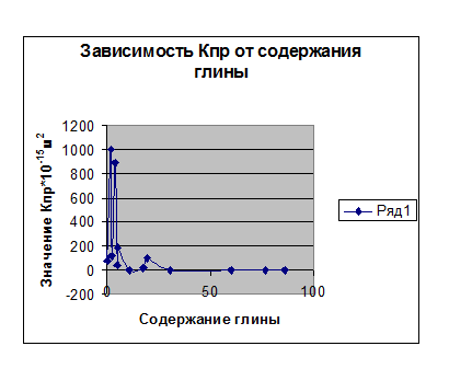 Мы видим, что при увеличении содержания глины в породе, проницаемость её уменьшается, а пористость увеличивается.
