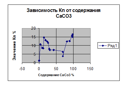 На графиках № 6 и № 7 показаны зависимости Кп и Кпр от содержания в породе CaCO3
