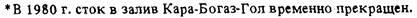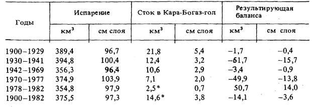 К расходным составляющим водного баланса до 1980 г. относился также сток морских вод из Каспия в залив Кара-Богаз-Гол. Непосредственные наблюдения за стоком в залив велись с 1928 г. Среднемноголетняя величина стока за 1900—1979 гг. составила около 15 км3
