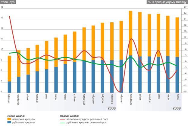 В настоящее время в условиях экономического кризиса (в т.ч. кризиса неплатежей) данные тенденции обернулись существенными потерями как для заемщиков, так и для банков: потерями всего или части бизнеса для коммерческих предприятий (в условиях невозможности рефинансировать полученные кредиты и/или отсутствия ликвидных средств по причине неоплаты дебиторской задолженности) и существенным ростом дефолтов для банков.