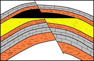 Если антиклинальная структура осложнена в сводовой части нарушением типа сброса, разведочные скважины закладываются на удалении от свода структуры. Для антиклинальных структур, осложненных нарушением типа взброса или надвига, первые поисковые скважины закладываются в сводовой части структуры.