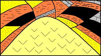 Если поверхности несогласия частично срезают антиклинальные поднятия, образуются так называемые лысые структуры, а залежи имеют форму кольца. Принцип заложения поисковых и разведочных скважин для них по существу не отличается от размещения скважин для приконтактного типа залежей. Разбуривание производится по двум взаимно перпендикулярным профилям, причем первые скважины закладываются на удалении от свода.