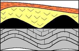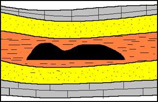 Залежи стратиграфического типа наиболее часто бывают связаны с головными участками эродированных пластов; несогласно перекрытых слабопроницаемыми породами, а также с выклинивающимися пластами пород-коллекторов, расположенными под поверхностью несогласия[6]