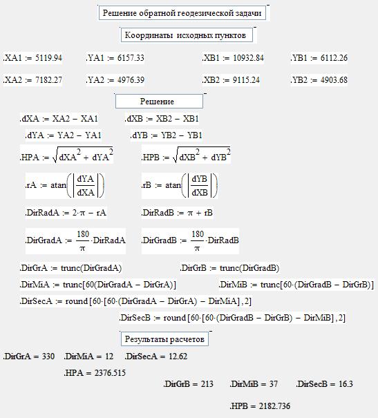Таким образом, в данной курсовой работе было решено и оформлено 4 типовые геодезические и одна математическая задачи с помощью языка программирования Turbo Pascal, табличного процессора Excel и MathCad 14.