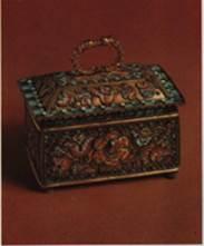 Но, пожалуй, самый .значительный вклад в развитие русского декоративно-прикладного искусства в XVII веке внес Сольвычегодск. В эмальерном искусстве он занимает особое место. Ларчик. Сольвычегодск. XVII век.