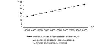 Таким образом, предприятие, использующее только собственный капитал, имеет наивысшую финансовую устойчивость (его коэффициент автономии равен единице), но ограничивает темпы своего развития (т.к. не может обеспечить формирование необходимого дополнительного объема активов в периоды благоприятной конъюнктуры рынка) и не использует финансовые возможности прироста прибыли на вложенный капитал.