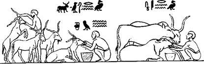 Вместе с земледелием двинулось вперед и скотоводство. Еще новый предмет пищи открыл человек. У дикой телки молока едва хватало на теленка; в неволе от улучшенного корма стал получаться излишек молока, который люди брали себе. Память об этом нововведении сохранилась надолго: молоко осталось праздничной пищей, которую делили с божеством, выливая ему часть на землю. Новое применение нашли и мелкому скоту, овцам и козам: с лучших пород начали стричь шерсть и приготовлять из животного волоса прочные и красивые ткани. Во всем обиходе человека произошла большая перемена, и он сознавал, как много нового богатства принесло прирученье животных. Во многих местах поэтому стали чтить быка, или тельца, как божью силу, представляя себе, что божество вселяется в это могучее и благодетельное животное.