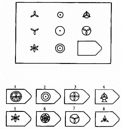 Для построения психологических профилей креативности нарисуйте два круга "Я-реальный" и "Я-идеальный" и разделите каждый на восемь частей. Разметьте полученные отрезки оси с середины на десять равных частей. На них откладываются баллы, которые отмечаются точками на оси каждого креативного показателя. Они свидетельствуют об уровне восьми выделенных креативных склонностей, которые при соединении точек составляют психологический профиль креативнос